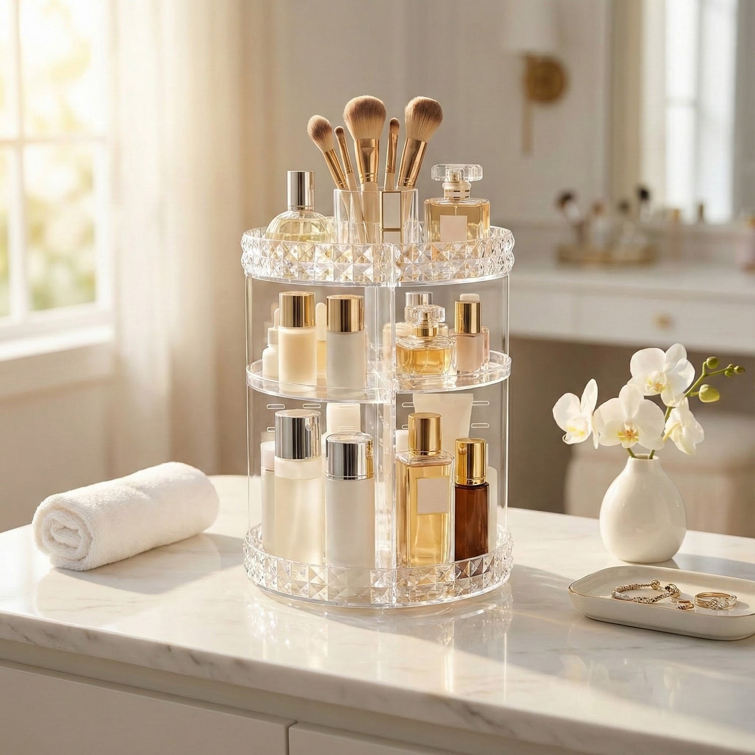 Diamond-Cut 360 Rotating Cosmetic and Makeup Organizer